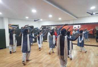 A complete wall of mirror, in which all participants can clearly observe their dance image has been built in. Dark colours for theatrical lighting effects as they absorb light, avoiding spill and maximising localised definition have been provided. The department has IT tools and musical instruments for dance and drama.