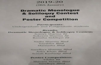 Literary Activities - The English Literary Association regularly organises literary activities. From time to time our students have enacted Macbeth, Julius Caesar, Monkey's Paw, Porphyria's Lover, Pygmalion, Like the Sun, The Merchant of Venice, Candida, While the Auto Waits, on the college stage and won accolades. Dramatic monologue and soliloquy performance, essay writing, quiz competition, debate competition, poetry recitation, poster making, are regularly organised to bring the latent talents of the students to the fore. Furthermore, their writing skills are given a platform in the English section of the college magazine , Gyananjali.