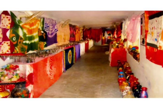 The technique specified by the department was dyeing and printing. The students prepared dupattas, runners, kurtas, saris, bed covers bed sheets etc, using the technique of block printing, tie and die, spray printing, block printing and screen printing.
