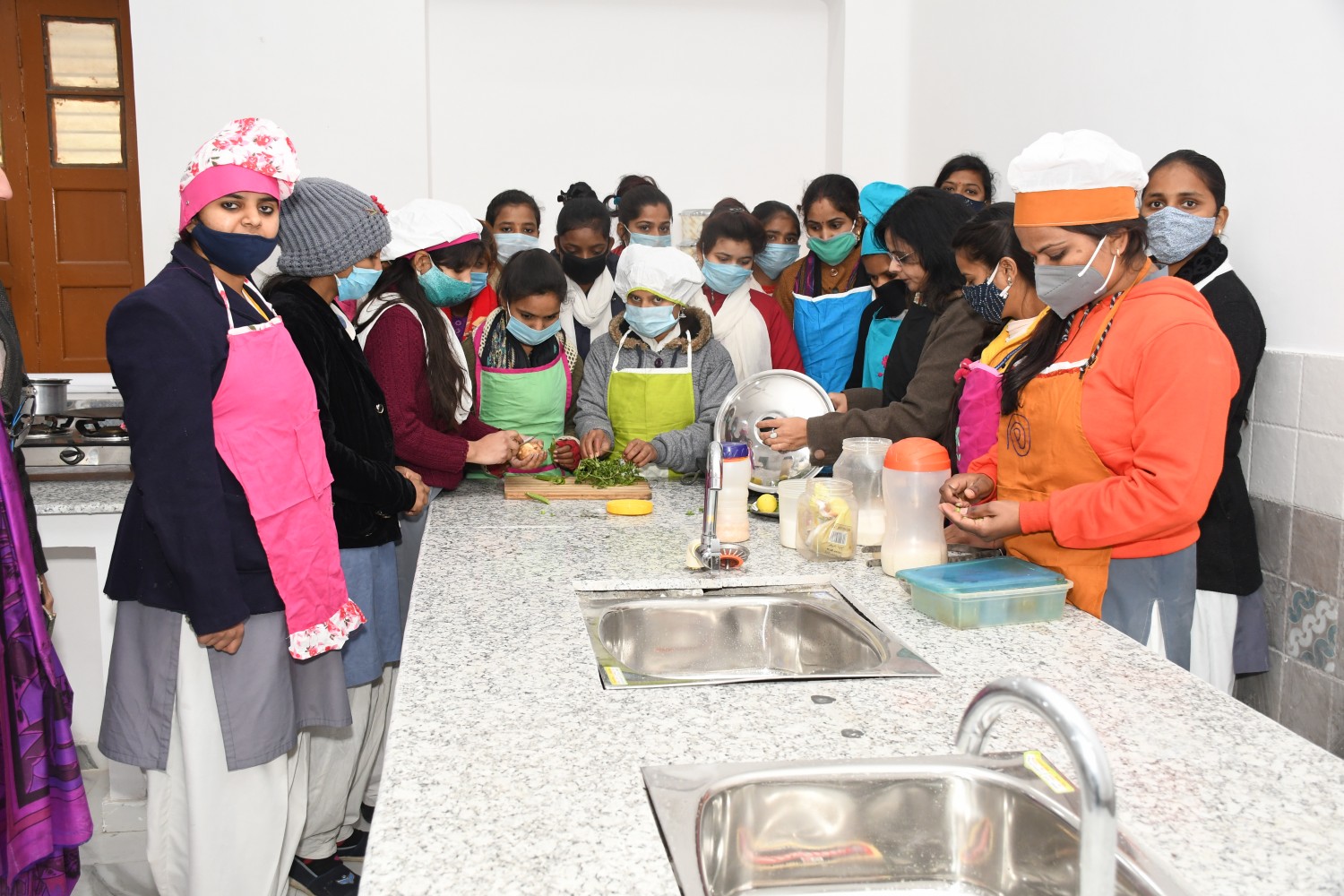 The foods and nutrition lab is well equipped with appliances which cater to the needs of different cooking methods viz: microwaves and otgs for baking, grilling and low fat cooking. It is equipped with steamers for cooking dishes using steam, Air fryer and grillers for cooking through roasting, Gas stoves for cooking through deep frying, boiling etc.