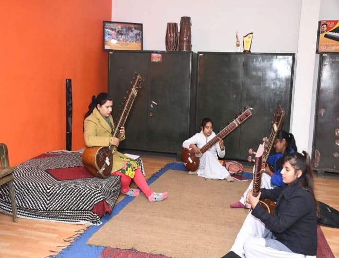 The students learn the traditional art forms of Indian classical music from a unique institute, which is a mixture of an age-old education system, i.e. the Guru-shishya parampara and institutionalized modern education system. The atmosphere of teaching-learning is of an extended family.
