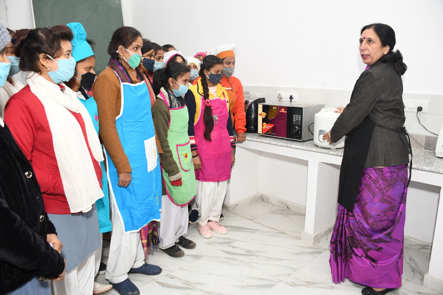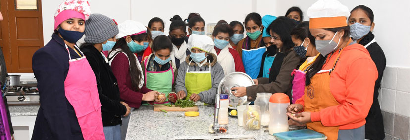 The foods and nutrition lab is well equipped with appliances which cater to the needs of different cooking methods viz: microwaves and otgs for baking, grilling and low fat cooking. It is equipped with steamers for cooking dishes using steam, Air fryer and grillers for cooking through roasting, Gas stoves for cooking through deep frying, boiling etc.