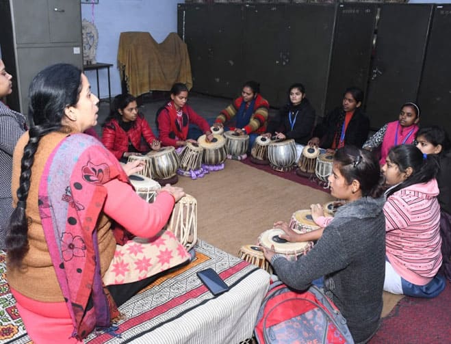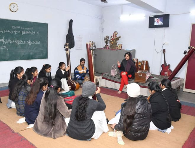 The students learn the traditional art forms of Indian classical music from a unique institute, which is a mixture of an age-old education system, i.e. the Guru-shishya parampara and institutionalized modern education system. The atmosphere of teaching-learning is of an extended family.