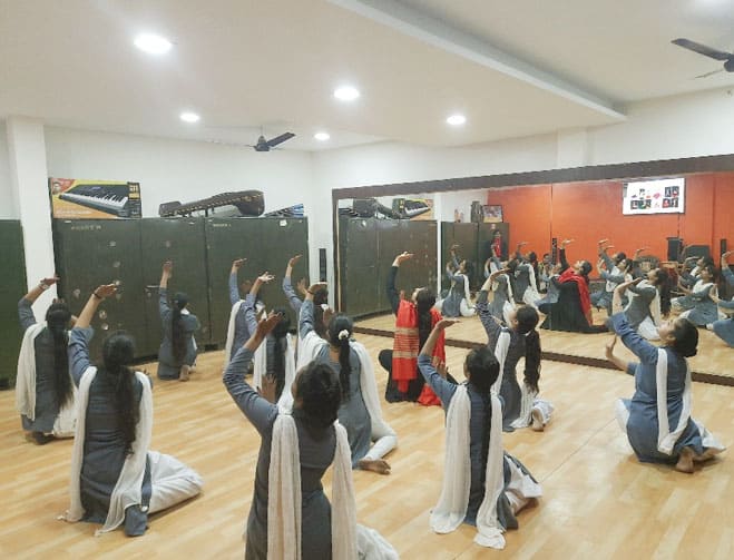 This subject is designed to help the students learn to perceive dance and develop sensitivity to dance. Students are introduced to and trained in skill and proficiency, the occasion of performance and standards of excellence. The ‘Choreography Studio’ of the college has been designed and developed to achieve this mission.