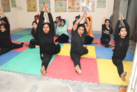 The Yoga Room of the Yoga department is specially equipped conducting Yoga Classes and provide advice to students and staff in health issues through yoga, acupressure and color therapy. The room is equipped with yoga mats, Health -Hygine charts.